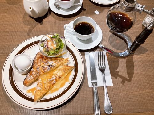 朝、早起きをして「倉式珈琲店」へ行きました。 モーニングセットのメインはフレンチトーストを注文。ドリンクは、本日のコーヒーである「エチオピア イルガチェフ G-1」の普通の濃さで注文しました。コーヒーの濃さは、薄め、普通、濃いめの3つから選ぶこと…